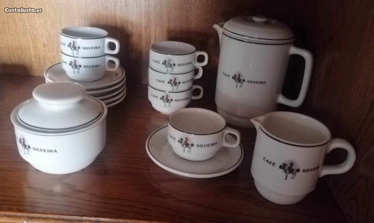 Antigo serviço de café em porcelana alusivo ao Café Silveira.