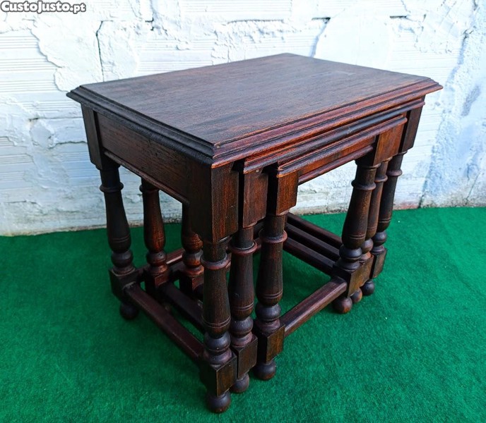 Preço: 60 €Conjunto vintage trio de mesas madeira maciça
