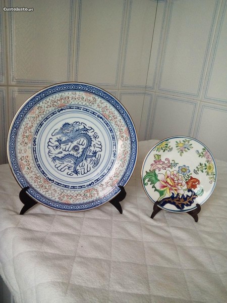 Dois pratos antigos de Macau/China em perfeito estado de conservação, com os seguintes diâmetros: