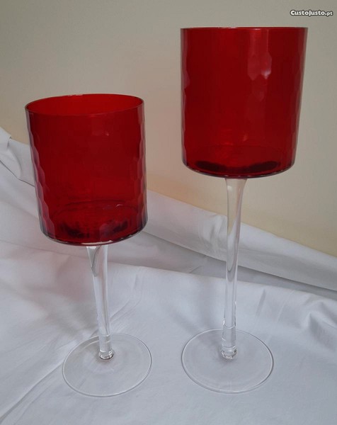 Preço: 20 €Elegantes Suportes para Velas em Vidro Encarnado