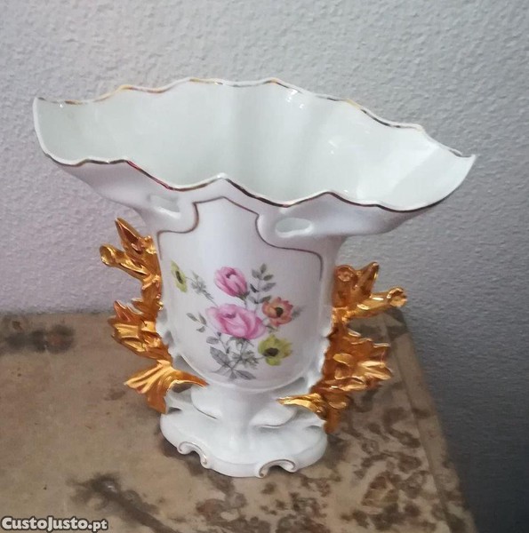 Preço: 55 €Jarra Vista Alegre, modelo Braga decorada com flores policromadas e dourados