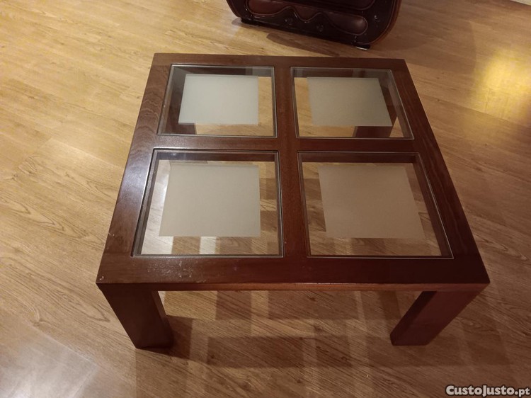 Preço: 30 €Mesa Centro Madeira Mogno 80x80x38 tampo vidro