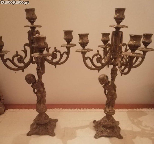 Preço: 95 €Par de candelabros / castiçal em bronze fundido francês " Querubin" anos 60