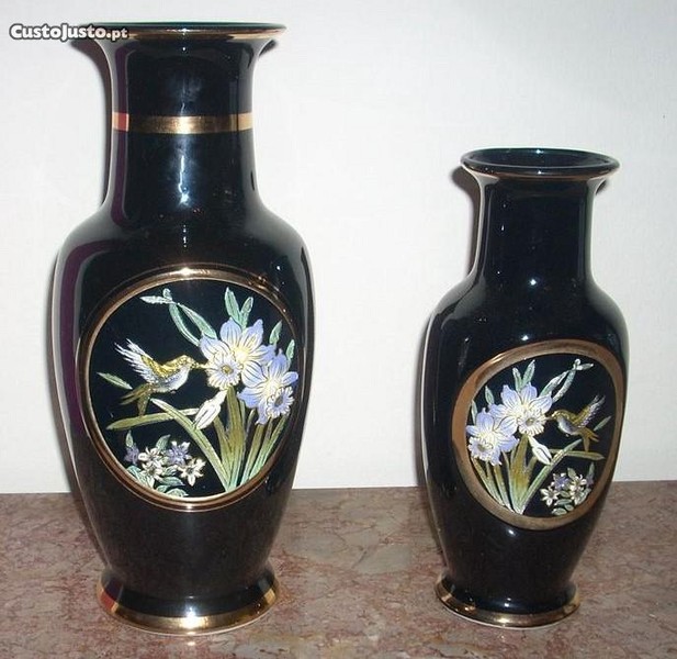 Par de jarras pretas em porcelana japonesa "Art de Chokin". Esta arte tem mais de 800 anos.
