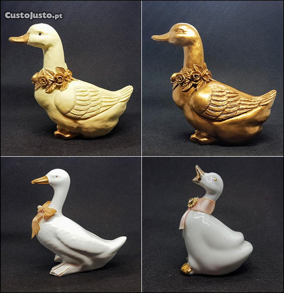 O preço anunciado é para a peça do canto inferior direito (pato pequeno em faiança). O do canto inferior esquerdo custa 4 Euros. Ambos os patos da zona superior das fotos custam 6 Euros/unidade. Farei desconto somente na compra das 4 unidades. Preços não negociáveis. Portes de envio não incluídos nos preços.