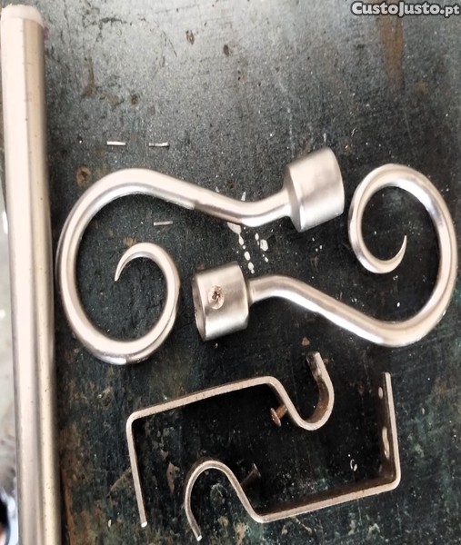Preço: 6 €Varão Cortinado Metal Cromado + Suportes Parede + Topos Decorativos
