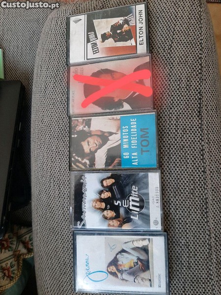 4 cassetes como novas.Tom Jones..Santa Maria..Joana..Elton John . 50 centimos cada.entrega no Cartaxo ou envio ctt para a morada.não faço envios á cobrança.pagamento para nib bancario ou mbhawy.portes pagos pelo comprador.