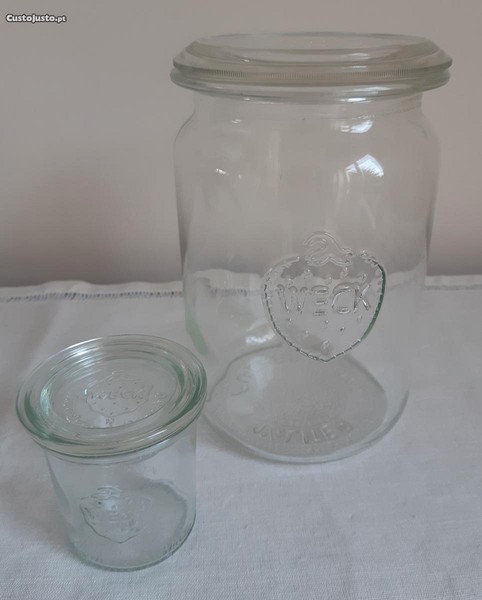 Conjunto de 2 frascos/boiões WECK, antigos, mas em perfeitas condições, com as seguintes capacidades: