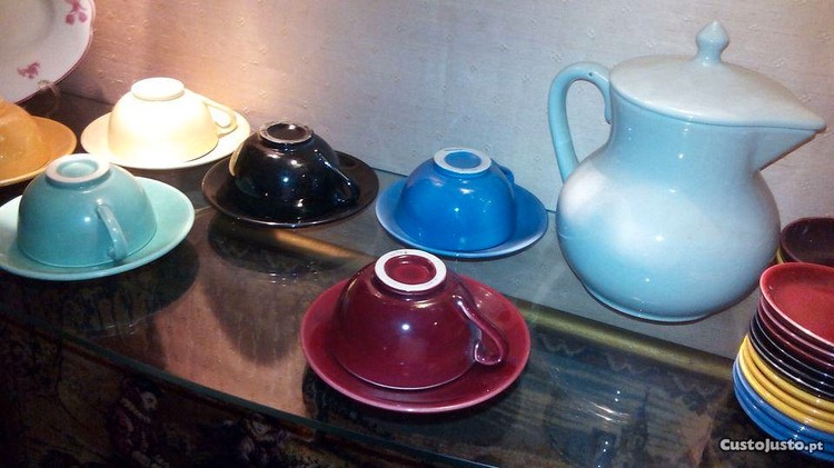 Preço: 95 €Serviço chávenas e bule/cafeteira,37 peças faiança Secla, s/ uso - década 40/50