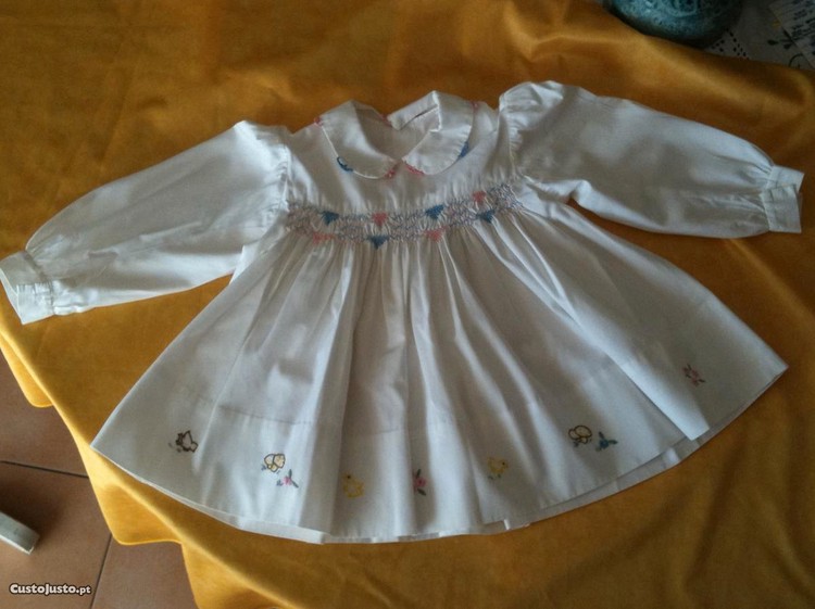 Lindo e delicado vestido para bebé de 0 a 3 meses feito em cambraia
