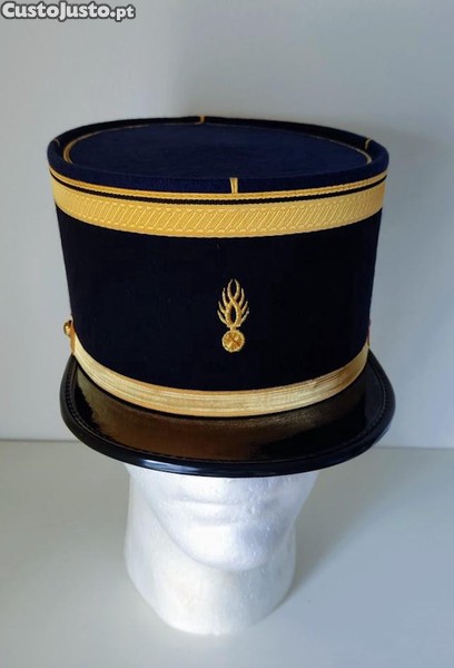 Boné autêntico e original, proveniente de coleção particular, modelo masculino para o posto de Sargeant da Gendarmerie Nationale de France, equivalente à Guarda Nacional Republica em Portugal, formato de boné apelidado em França de képi.