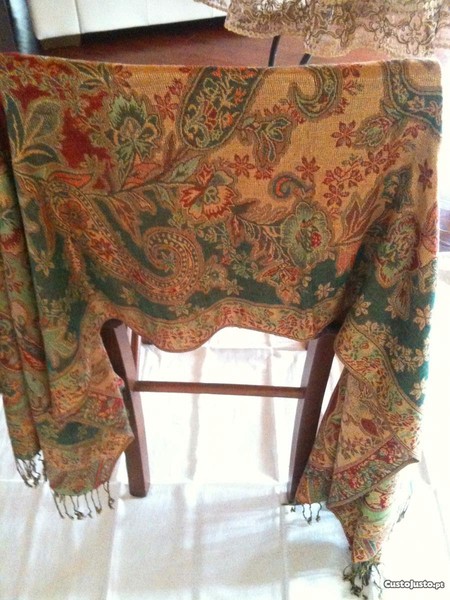 Preço: 15 €Linda écharpe nova em tons verdes e fio dourado