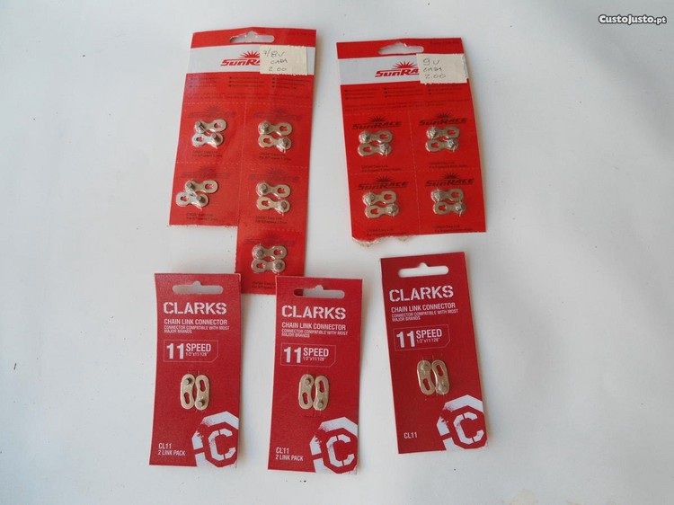 Artigos absolutamente novos, nunca usados/montados, compatíveis com todas as marcas de corrente. Disponíveis apenas 4 unid. marca Clarks e 4 unid. marca Sram.