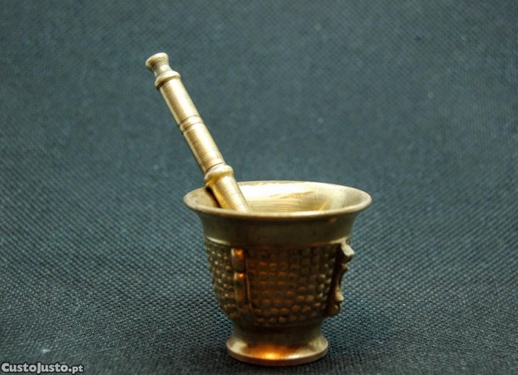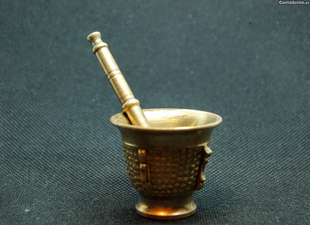 Almofariz vintage de coleção miniatura em bronze