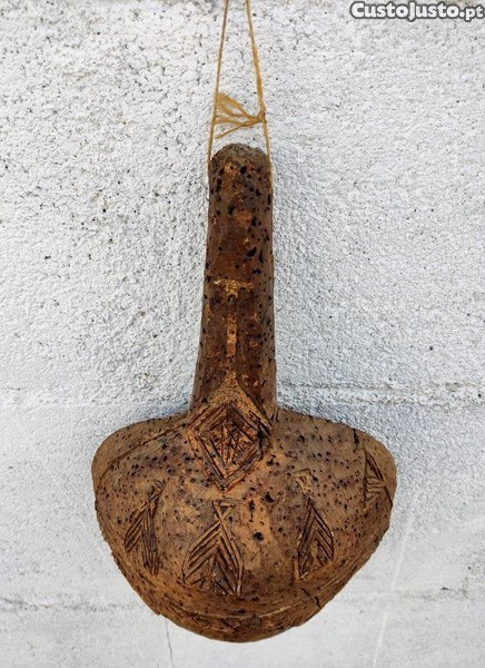 Utensílio rural para beber água no campo, apelidado de cocho ou cocharro, de fabrico artesanal em casca de sobreiro (cortiça), com bonitos entalhes na parte traseira, para uso e/ou meramente decoração, proveniente da província do Alentejo Portugal.