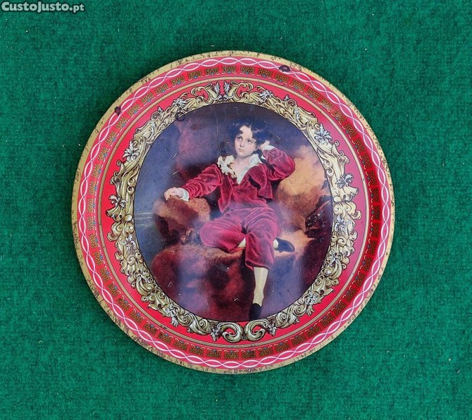 Lindíssima bandeja redonda, da década de 1960, proveniente de Inglaterra, com impressão de uma reprodução do famoso retrato do jovem Charles William Lambton (1825), feito por Sir Thomas Lawrence, intitulado Red Boy. Apresenta cores fortes e agradáveis, principalmente vermelho e dourado. Pesa 221g e mede 32 cm de diâmetro e sua borda tem 2,5 cm de altura. Está em boas condições gerais, com desgaste compatível com sua idade. Não há amassados e há riscos superficiais e oxidação mínimos.