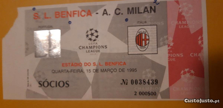 Preço: 40 €Bilhete Futebol Benfica - Milan