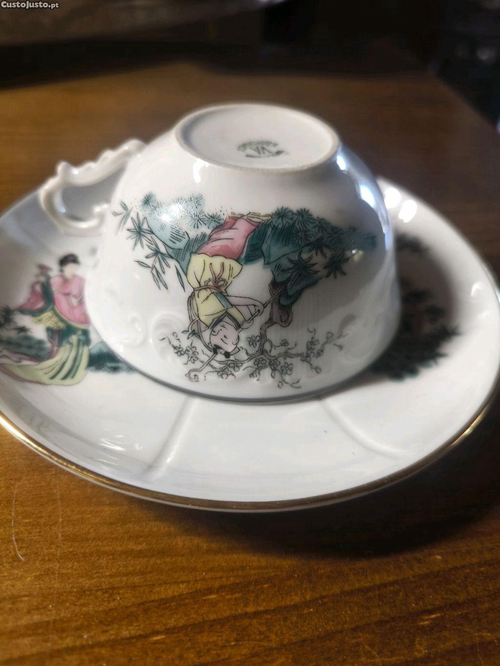 Chávena e Pires Vista Alegre - Decoração Oriental Vintage