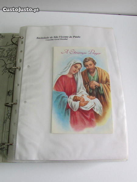 Peculiar coleção com cerca de 100 antigos postais alusivos à época do Natal, provenientes das mais diversas regiões e países de todo o mundo, reunidos e catalogados em bolsas transparentes tamanho A4, bolsas estas guardadas num dossier para que possam ser facilmente visionados e apreciados.