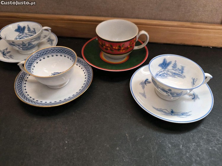Conjunto de quatro chávenas de chá com os seus respetivos pires da marca vista alegre