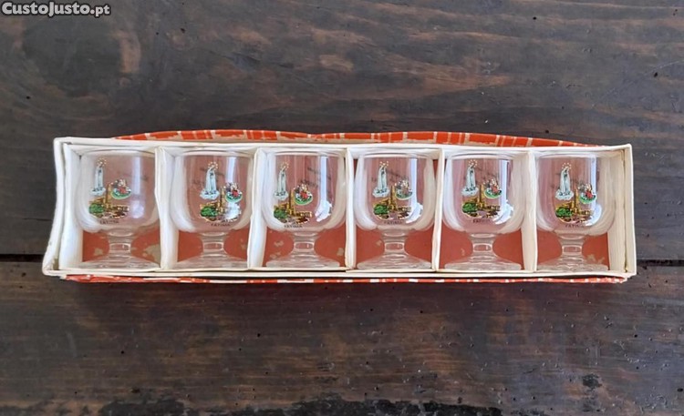 Conjunto de 6 Cálices VINTAGE, Recordação de Fátima em Caixa Original