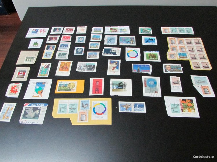 Conjunto com cerca de 70 selos usados do CANADÁ, ainda colados no papel