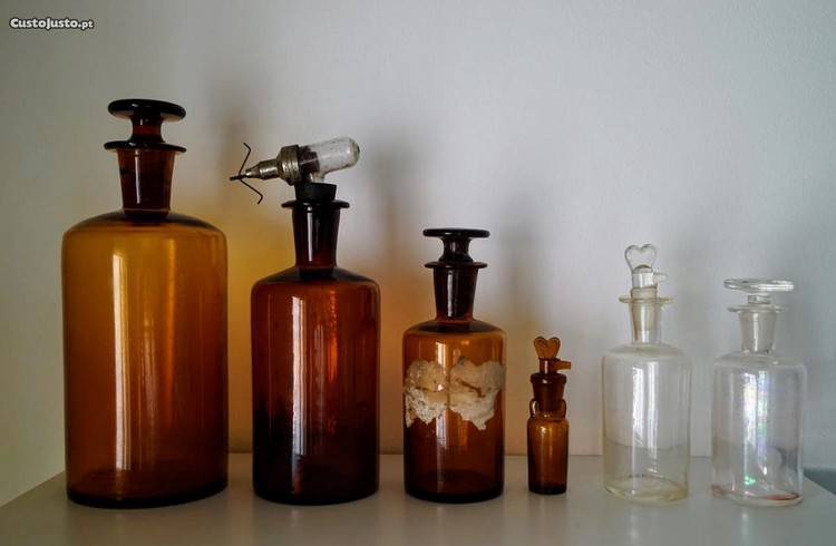 - Todos os frascos e tubos se encontram completos e em excelentes condições de conservação, sem partes quebradas nem rachadelas. Todos estiveram a uso real em serviço de farmácia/laboratório.