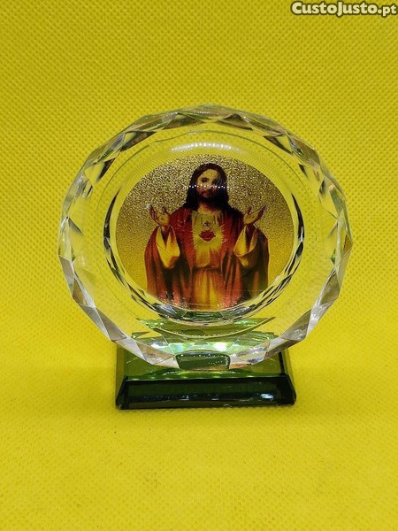 Adereço antigo com a imagem de Jesus Cristo, de formato circular, fabricado em plástico circular, dotada de base para colocar de pé. Possibilidade de envio com acréscimo de preço. Pesa 122g. Mede 8cm altura x 7,5cm base (ver última foto). Veja também os meus outros artigos religiosos anunciados, ateste a minha antiguidade enquanto utilizador registado. Honestidade, seriedade e rapidez nas respostas e entregas/envios.