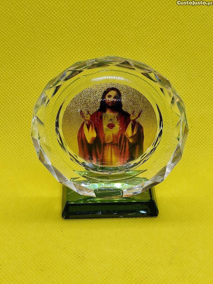 Imagem religiosa formato circular com base de Jesus Cristo