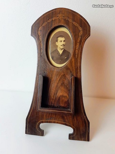 Antiga moldura D. Maria do séc. XIX, em madeira facheada a Pau-Santo e trabalho de marqueterie, contendo fotografia (original) igualmente antiga de cavalheiro (desconhecido).
