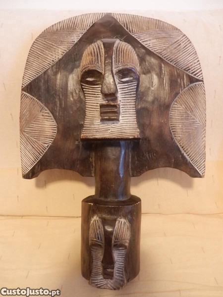 Máscara antiga de ritual africano, dos Camarões com incrustações em cobre.