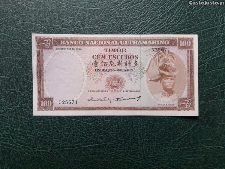 Preço: 12 €Nota 100 escudos Timor Régulo Aleixo