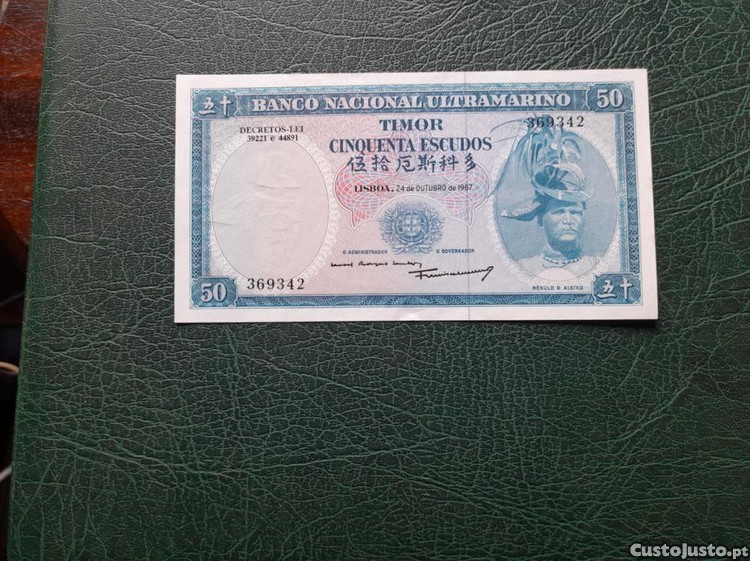 Preço: 30 €Nota 50 escudos Timor Régulo Aleixo