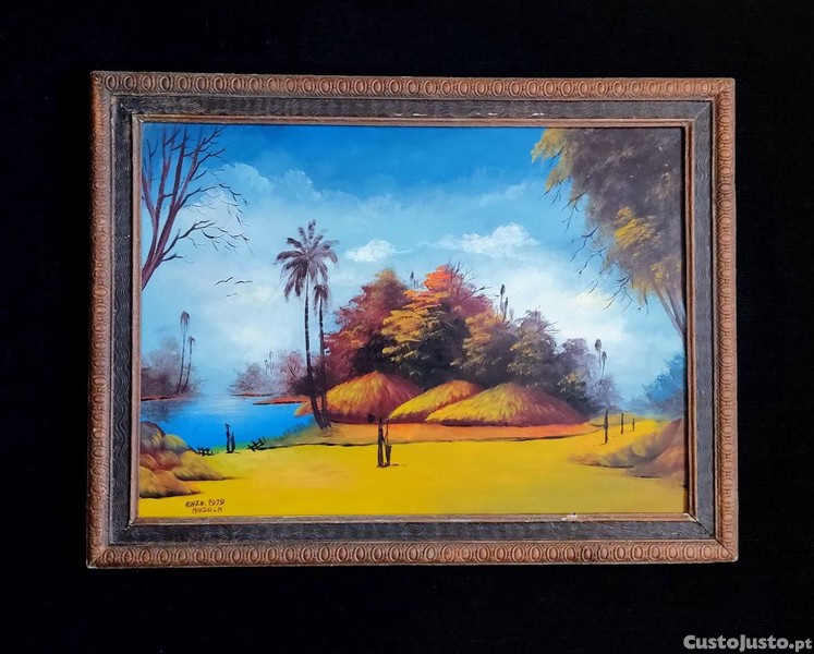 Pintura de paisagem Africana datada 1979 Angola assinada e emoldurada