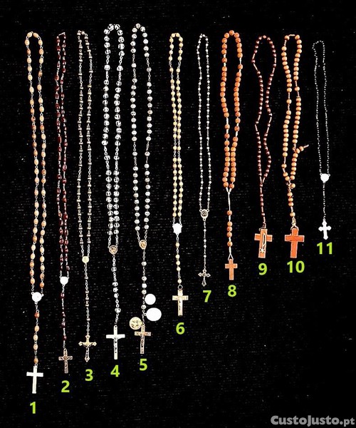 O preço apresentado é meramente figurativo. Preços entre 3EUR e 13EUR. Em caso de interesse contatar para mais informação (características, peso, comprimento, diâmetro e fotos) e indicar o número do terço que pretende para melhor identificação.