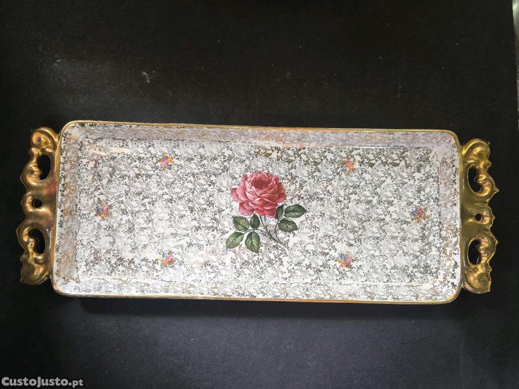 Preço: 20 €Travessa Decorativa Dourada com Rosa