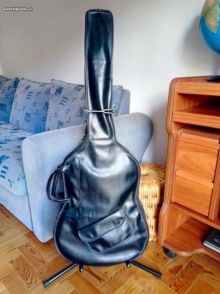 Guitarra "SigmaGuitars", modelo CS2, com suporte da "Clifton" e capa de transporte.