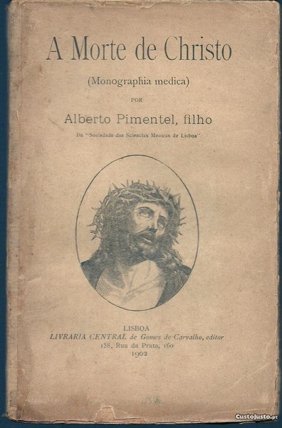 A MORTE DE CHRISTO. (Monographia Medica). *** Alberto Pimentel, filho [Da Sociedade das Sciencias Medicas de Lisboa] *** Lisboa: Livraria Central de Gomes de Carvalho, editor, 1902. (19 x 12 cm.) com 127 + [1] + XII + [4] pp. Capa flexível. Exemplar razoável. Capa com evidentes marcas de manuseamento, manchada, com vincos e gasta e deteriorada nas margens, onde apresenta pequenos rasgões e a falta de pedaços de papel. A lombada foi inteiramente coberta (substituída?) por uma tira de papel sem qualquer inscrição. Páginas em relativo bom estado e, de um modo geral, limpas, mas amarelecidas e com algumas manchas, importantes apenas na primeira e última folhas, que apresentam grandes manchas de acidez, sobretudo junto das margens. Uma das primeiras folha tem um rasgão na margem lateral, mas sem qualquer falta de papel e não atingindo a parte impressa. *** Primeira edição deste trabalho que, no dizer do autor, não tem intuitos religiosos, sendo uma monografia puramente médica. Como escreve no texto introdutório: «Cautelosamente afastei delle todas as considerações de ordem puramente religiosa. A ideia fundamental da monographia, a interpretação medica da morte de Christo, foi-me avigorada pelas recentes investigações scientificas sobre o celebre sudario de Turim. A imprensa portugueza muito pela rama deu conta dessa palpitante questão, de modo que, na hora actual, a maioria dos portuguezes cultos desconhece o assumpto. Na primeira parte da monographia, limito-me a expor as conclusões a que a sciencia chegou a respeito do lençol de Christo. Para isso me socorri do trabalho do naturalista francez Paulo Vignon, a cuja intervenção o mundo scientifico deve o conhecimento do sudario. Trabalho notavel sob todos os pontos de vista, de uma clareza e verdade scientifica muito para louvar, está por certo destinado a levantar interessante discussão, tão palpitante e intrincado é o assumpto. Depois, na segunda parte do meu trabalho, procurarei investigar, á face da sciencia medica, qual a verdadeira causa da morte de Christo, ajudado pelos dados inesperados que o sudario de Turim veio revelar. Livro invulgar. *** Portes: envio gratuito em correio normal (tarifa especial para livros) * envio em correio registado: 1,70