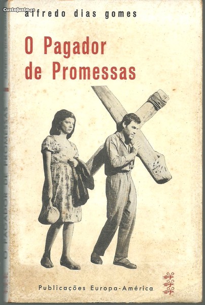 O PAGADOR DE PROMESSAS. *** Alfredo Dias Gomes *** Lisboa: Publicações Europa-América, 1963. Colecção: Os Livros das Três Abelhas - 61. (18 x 11,5 cm.) com 120 + [4] pp. Capa flexível. Exemplar razoável. Capa envelhecida, com marcas de manuseamento, manchas de acidez (visíveis também no lado de dentro), algo empoeirada e um pouco gasta nas margens e na lombada. Páginas, de um modo geral, bem conservadas e limpas, embora apresentem um tom amarelecido (mais forte nas margens) e algumas pequenas manchas de acidez, que se concentram sobretudo nas primeiras, nas últimas e nos cortes. Na primeira página tem, no entanto, uma mancha de cola, que deve ter servido para fixar uma etiqueta, de que parecem restar vestígios. *** Primeira edição portuguesa da mais famosa peça de teatro de Dias Gomes, que foi um dos maiores dramaturgos brasileiros do século XX, tornando-se conhecido em Portugal sobretudo como autor de telenovelas de grande sucesso, como «O Bem-Amado ou «Roque Santeiro. Encenada pela primeira vez em 1960, esta peça em três actos, que narra a trágica história de Zé-do-Burro, seria depois adaptada para o cinema, num filme homónimo realizado por Anselmo Duarte, que conquistou a Palma de Ouro no Festival de Cannes de 1962. *** Portes: envio gratuito em correio normal (tarifa especial para livros) * envio em correio registado: 1,70