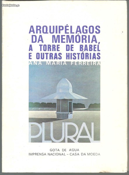 ARQUIPÉLAGOS DA MEMÓRIA, A TORRE DE BABEL E OUTRAS HISTÓRIAS. *** Ana Maria Ferreira *** [Porto]: Gota de Água; [Lisboa]: Imprensa Nacional - Casa da Moeda, 1984. Colecção: Plural. (20,5 x 15 cm.) com 98 + [6] pp. Capa flexível, com badanas. Exemplar razoável. Capa com marcas de manuseamento, algumas manchas e com um pequeno desgaste nas margens e na lombada, encontrando-se ainda, apesar de tudo e de um modo geral, em boas condições. Páginas bem conservadas e limpas. *** Primeira edição deste livro de poemas, o segundo publicado pela Autora, depois da estreia, em 1969, com Recado e Aviso. Natural de Lisboa e já falecida, Ana Maria Pereira Ferreira, destacou-se sobretudo como historiadora, sendo pioneira em Portugal, entre outras temáticas, no estudo da pirataria e do corso. *** Portes: envio gratuito em correio normal (tarifa especial para livros) * envio em correio registado: 1,70