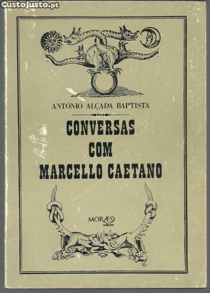 CONVERSAS COM MARCELLO CAETANO. *** António Alçada Baptista *** Lisboa: Moraes Editores, 1973. (20 x 14 cm.) com 274 + [2] pp. Capa flexível. Exemplar razoável. Capa com marcas de manuseamento, pequenas perdas de cor em alguns pontos, manchas ligeiras, algumas pequenas esfoladelas na capa da frente e na lombada e um pouco gasta nas margens e na lombada, que apresenta também vincos de abertura. Globalmente, apesar de envelhecida e um pouco maltratada, está ainda apresentável. Páginas, de um modo geral, bem conservadas e limpas, embora apresentem um tom amarelecido e manchas de acidez que atingem sobretudo as primeiras, as últimas e os cortes. Tem uma pequena etiqueta da editora colada na primeira página. Por manifesto erro tipográfico as páginas numeradas de 81 a 96 aparecem por uma ordem errada, o que, não impedindo a leitura, a dificulta, pois obrigada a alguns avanços e recuos. *** Primeira edição deste livro que resulta de uma série de entrevistas sobre a política portuguesa, feitas pelo Autor ao então Presidente do Conselho, Marcello Caetano, que já havia sido professor de António Alçada Baptista na Faculdade de Direito de Lisboa. Documento importante para o conhecimento das ideias políticas de Marcelo Caetano, que era ainda na época visto por muitos como uma esperança de abertura do regime vigente e de eventual transição para a democracia. *** Portes: envio gratuito em correio normal (tarifa especial para livros) * envio em correio registado: 1,70
