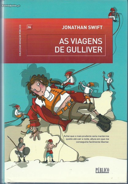 AS VIAGENS DE GULLIVER. *** Jonathan Swift *** Tradução de Lúcia do Carmo Cabrita Harris *** Título original: Gullivers Travels *** Porto: Público, 2004. Colecção Geração Público - 4. (22 x 15 cm.) com 341 + [11] pp. Capa dura, com sobrecapa de papel. Bom exemplar. Sobrecapa com ligeiras marcas de uso e um leve desgaste nas margens, encontrando-se, globalmente, em bom estado e limpa. Capa dura e páginas bem conservadas e limpas. *** Edição graficamente cuidada da obra-prima de Jonathan Swift, considerada aquando do seu aparecimento, em 1726, um romance filosófico e hoje relegada, com alguma ligeireza e sobranceria intelectual, para a categoria de literatura infanto-juvenil. *** Portes: envio gratuito em correio normal (tarifa especial para livros) * envio em correio registado: 1,70