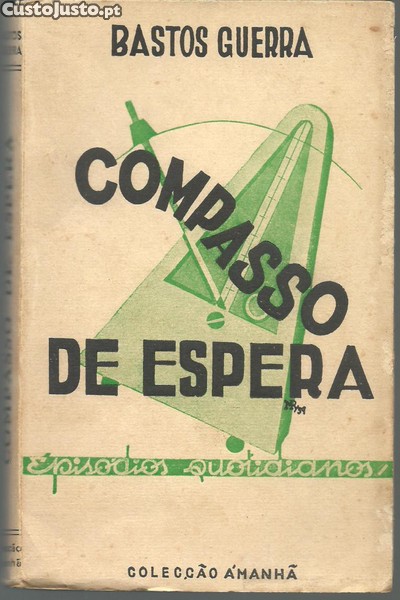 COMPASSO DE ESPERA. Episódios Quotidianos. *** Bastos Guerra *** Lisboa: [Sem ind. de editor], 1940. (Imprensa Artística, Limitada - Lisboa). Colecção Amanhã. (19 x 12 cm.) com 202 + [6] pp. Capa flexível. Exemplar razoável. Capa com marcas de manuseamento, pequenas manchas e um pouco gasta e amachucada nas margens e na lombada, estando a margem lateral externa da capa da frente roída pela traça em alguns pontos. Apesar de tudo, de um modo geral, está ainda bastante apresentável. Páginas globalmente bem conservadas e limpas, embora apresentem um ligeiro amarelecimento e algumas pequenas manchas de acidez (pouco frequentes e de reduzida importância). Tem, no entanto, uma pequena assinatura de posse e uma data manuscrita no canto superior direito da primeira página. *** Primeira edição deste livro de textos breves de fundo humorístico, género que, de resto, constituiu o essencial da produção literária do Autor. (Índice nas imagens 5 e 6). *** Portes: envio gratuito em correio normal (tarifa especial para livros) * envio em correio registado: 1,70