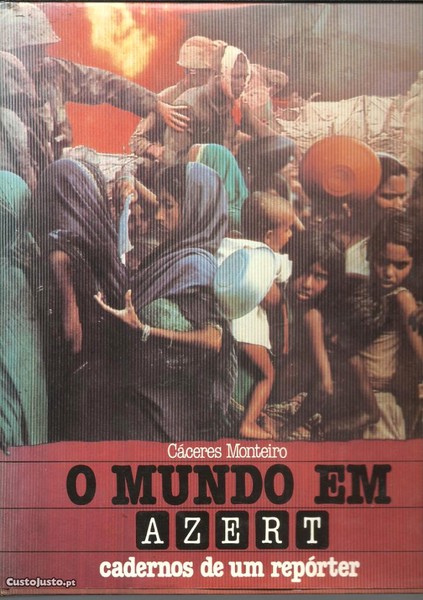 O MUNDO EM AZERT. Cadernos de um Repórter. *** Cáceres Monteiro *** [Lisboa]: O Jornal, 1984. (29,5 x 23 cm.) com 194 + [6] pp. Com muitas ilustrações a p/b.. Capa dura, com sobrecapa de papel ilustrada. Exemplar razoável. Sobrecapa com marcas de manuseamento, pequenas manchas (só visíveis no lado de dentro), alguns vincos discretos e um pouco gasta nas margens, que se encontram também ligeiramente amachucadas em alguns pontos. Apesar disso, de um modo geral, está ainda em bom estado e limpa. Capa dura bem conservada e limpa, apresentando apenas as extremidades da lombada ligeiramente amachucadas. Páginas globalmente bem conservadas e limpas, apresentando, no entanto, um ligeiro amarelecimento e uma ou outra pequena mancha (raras e de muito reduzida importância). Tem, contudo, uma assinatura de posse no anterrosto. *** Primeira edição, publicada pelo Círculo de Leitores, da qual se fez uma tiragem (a que o presente exemplar pertence) de 1500 exemplares para as edições de O Jornal. Reunião de reportagens jornalísticas de Cáceres Monteiro, originalmente publicadas no semanário O Jornal, que documentam alguns acontecimentos históricos marcantes do século XX («batalhas, insurreições, países destruídos pela guerra, povos em fuga), que tiveram por cenário a «América Central, as antigas colónias portuguesas de África no período do após-independência, o Irão e o Sudeste asiático, entre outros locais do Globo. Em algumas das reportagens o Autor foi acompanhado de três dos melhores repórteres fotográficos portugueses: Carlos Gil, Eduardo Gageiro e Joaquim Lobo, cujos trabalhos aparecem também reproduzidos no livro. (Índice na imagem 6). *** Portes: envio gratuito em correio normal (tarifa especial para livros) * envio em correio registado: 1,70