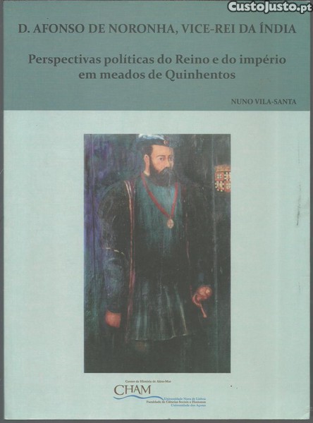 D. AFONSO DE NORONHA, VICE-REI DA ÍNDIA: PERSPECTIVAS POLÍTICAS DO REINO E DO IMPÉRIO EM MEADOS DE QUINHENTOS. *** Nuno Vila-Santa *** Lisboa: Centro de História de Além-Mar - Faculdade de Ciências Sociais e Humanas / Universidade Nova de Lisboa - Universidade dos Açores, 2011. Colecção: Teses - 7. (25 x 18,5 cm.) com 202 + [6] pp. Com algumas ilustrações a p/b.. Capa flexível, com badanas. Bom exemplar. Capa com pequenas marcas de manuseamento e um leve desgaste nas margens, encontrando-se em bom estado e limpa. Páginas bem conservadas e limpas. *** Primeira edição deste livro que, de acordo com o Autor, «analisa a trajectória social e política de D. Afonso de Noronha em função do cargo mais importante que desempenhou ao longo da sua carreira: o vice-reinado da Índia entre os anos de 1550 e 1554, procurando averiguar em que contexto é que este sobrinho do monarca foi indigitado para o cargo, quais as condições que levaram D. João III a escolher D. Afonso de Noronha para suceder ao vice-rei D. João de Castro e de que forma o seu governo correspondeu às expectativas que lhe foram depositadas aquando da sua nomeação. Mas talvez a questão mais importante a que se procurou responder foi a de saber em que medida o governo de D. Afonso de Noronha contribuiu para ajudar a solucionar a designada crise de meados de Quinhentos, se teria buscado soluções para essa crise e assim aberto novos trilhos políticos e militares aprofundados posteriormente. «Através do enquadramento das diferentes conjunturas políticas e cortesãs da vivência de D. Afonso de Noronha, ancorado sempre que possível na sua correspondência, procura-se contribuir para um conhecimento mais aprofundado das dinâmicas imperiais de meados de Quinhentos, perspectivadas a partir do Reino, do Norte de África e, sobretudo, do Estado da Índia. (Índice nas imagens 6 e 7). Tiragem de apenas 500 exemplares. *** Portes: envio gratuito em correio normal (tarifa especial para livros) * envio em correio registado: 1,70