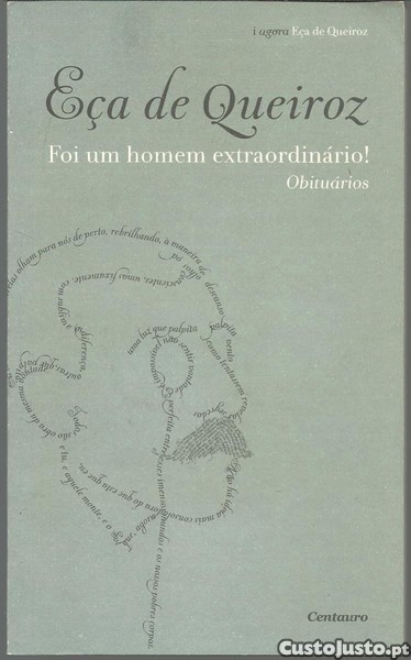 FOI UM HOMEM ESTRAORDINÁRIO! OBITUÁRIOS. *** Eça de Queiroz *** Coordenação editorial: Vasco Silva *** Revisão: Ana Cunha *** Design e paginação: Inês Sena *** [Lisboa]: Centauro [«Centauro é uma chancela Babel], [Sem ind. de ano: 2010 (?) - data do copyright e do Depósito legal]. Colecção: I Agora Eça de Queiroz. (19 x 11,5 cm.) com 56 + [4] pp. Capa flexível. Bom exemplar. Capa com pequenas marcas de manuseamento e ligeiras perdas de cor em alguns pontos, mas, de um modo geral, ainda em bom estado e limpa. Páginas bem conservadas e limpas. *** Provável primeira edição independente deste curioso livrinho que recolhe três obituários escritos por Eça de Queirós e referentes a Lord Beaconsfield, Vítor Hugo e Flaubert. *** Portes: envio gratuito em correio normal (tarifa especial para livros) * envio em correio registado: 1,70