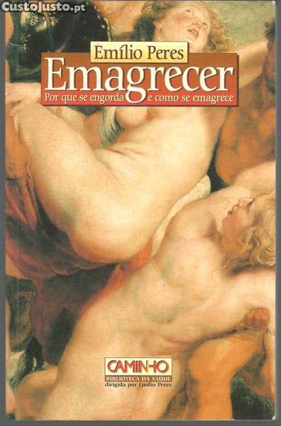 EMAGRECER. Por que se engorda e como se emagrece. *** Emílio Peres [Professor convidado do Curso de Ciências da Nutrição, Universidade do Porto. Chefe do Serviço de Endocrinologia, Hospital de S. João] *** Lisboa: Editorial Caminho, 1996. Colecção: Biblioteca da Saúde - 16. (21 x 13,5 cm.) com 202 + [2] pp. Com algumas (poucas) ilustrações a p/b.. Capa flexível. Exemplar razoável. Capa com marcas de manuseamento, um pequeno desgaste nas margens e apresentando um vinco pronunciado na contracapa, que a atravessa a toda a altura. Apesar disso, está ainda bastante apresentável e limpa. Páginas globalmente bem conservadas e limpas, embora apresentem algumas pequenas manchas nos cortes, de reduzida importância. As duas últimas folhas têm vincos no canto superior externo. *** Primeira edição deste livro que «trata das razões que levam a engordar e discute os processos para perder peso. Foi escrito a pensar em todos aqueles que se interessam pela sua saúde e a dos outros; e que querem conhecer qual a importância da alimentação sadia, do bem-estar psicoemocional e da actividade muscular, nomeadamente dos desportos de lazer e recreação, para promover a saúde e, consequentemente, prevenir as doenças metabólicas e degenerativas crónicas, entre elas a obesidade. E destina concretamente os seus conselhos àqueles que se preocupam com a composição correcta do seu corpo, com a sua linha, e com o decorrente bom peso saudável; àqueles que, libertos pelo médico do receio de doenças associadas, não encontram ainda vontade bastante para se tratarem; e àqueles que, estando a seguir um tratamento ou sendo a ele obrigados, desejam conhecer melhor a problemática do distúrbio que os aflige.» (Índice nas imagens 5 a 8). *** Portes: envio gratuito em correio normal (tarifa especial para livros) * envio em correio registado: 1,70