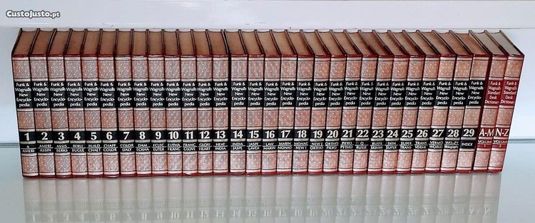 Coleção completa de 31 livros, composta de 29 volumes + 2 dicionários, em estado semi-novo, de livros de capa rija com as dimensões (23,56m x 16,3cm x 2,8cm espessura, publicada pela editora americana Funk & Wagnalls Corporation.