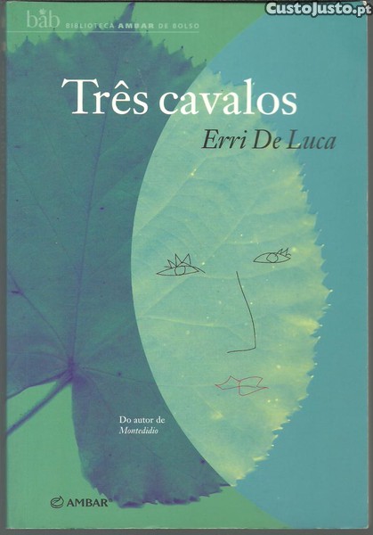 TRÊS CAVALOS. *** Erri De Luca *** Traduzido do italiano por José Lima *** Título original: Tre cavalli *** Porto: Ambar, 2004. Colecção: BAB - Biblioteca Ambar de Bolso - 30. (19 x 13 cm.) com 118 + [2] pp. Capa flexível. Exemplar razoável. Capa com marcas de manuseamento e um ligeiro desgaste nas margens, mas encontrando-se ainda em bom estado e limpa. Páginas globalmente bem conservadas e limpas, mas apresentando um tom amarelecido, próprio do papel, e algumas pequenas manchas de acidez, que atingem praticamente apenas as primeiras e as últimas. *** Primeira edição portuguesa deste romance do escritor italiano Erri De Luca, sobre o qual se lê, à maneira de sinopse, na contracapa: «Três cavalos: a vida de um homem. Se é esta a duração de uma vida, este livro narra o tempo dos dois primeiros cavalos da vida de um homem. Tendo partido ainda rapaz para a Argentina por amor, lança-se na furiosa guerra clandestina contra a ditadura quando lhe assassinam a mulher. Desce ao fundo da América para salvar a vida perseguida e aprende o avesso geográfico do mundo: o sítio onde está não é o fundo das últimas terras, mas o cume das primeiras. O Sul é o chapéu, não os sapatos do mundo. Muitos anos e muita sorte depois, uma mulher em Itália renova-lhe o corpo, o amor e a Argentina ensanguentada dos vinte anos. Quem procura neste homem palavras voltadas para o passado, não o encontrará. Como o amor, possui apenas o tempo presente.» *** Portes: envio gratuito em correio normal (tarifa especial para livros) * envio em correio registado: 1,70