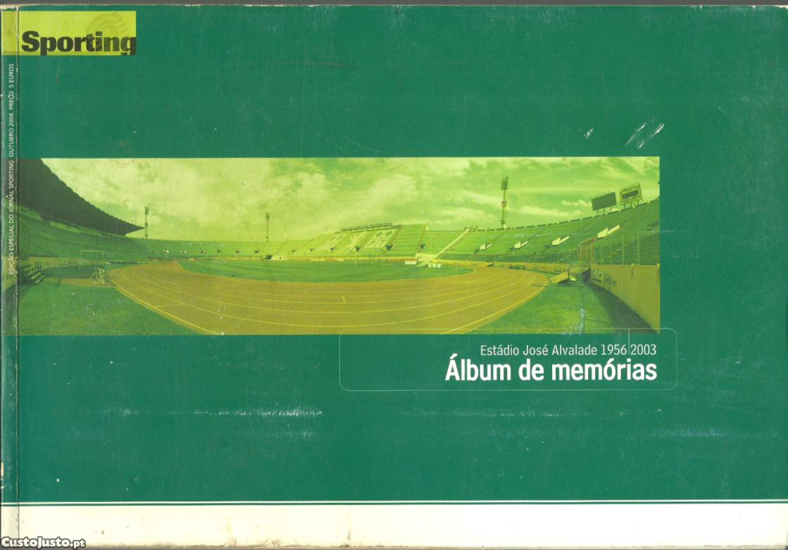 ESTÁDIO JOSÉ ALVALADE 1956-2003 - ÁLBUM DE MEMÓRIAS. *** Director: João Goulão *** Director-adjunto: Fernando Correia *** Coordenação e edição: José Goulão e Rita Taborda *** Produção gráfica: Ruben Coelho e Roberto Pereira *** Textos: Andreia Alexandre, Fernando Correia, Jorge Vicente, José do Camo Francisco, José Goulão, Nélida Gomes, Rita Taborda e Sandro Baguinho *** Revisão: José Alvarez *** Colaboração especial: Rui Miguel Tovar, Rui Tovar e Nuno Martins *** Fotografia: Jorge Padeiro, José Cruz e Pedro Cruz *** [Lisboa]: Jornal Sporting, 2004. (20,5 x 30 cm.) com 171 + [5] pp Profusamente ilustrado a p/b. e a cores. Capa flexível. Exemplar razoável. capa com marcas de manuseamento, pequenas perdas de cor em alguns pontos, manchas, vincos (sobretudo de pressão) e um pouco gasta nas margens e na lombada. Apesar de acusar o uso e algum envelhecimento, de um modo geral, está ainda bastante apresentável. Páginas globalmente bem conservadas e limpas. *** Primeira e julgo que única edição deste Álbum de Memórias relativo ao Estádio José Alvalade, publicado em Edição Especial do Jornal Sporting, em Outubro de 2004, quando o estádio foi totalmente demolido, encerrando um ciclo da história do Sporting Clube de Portugal. «Este álbum é o prolongamento da vida do velho Estádio através da evocação de memórias, feitos e obras dos que aqui deixaram a sua marca. Além de imagens, algumas inéditas, da construção à demolição, sucedem-se as narrativas, as entrevistas, as evocações dos grandes momentos - da inauguração aos títulos nacionais, sem esquecer a magia das noites da Taça das Taças, do recorde de Mamede, das cavalgadas de Lopes, das pedaladas emocionantes de Agostinho, das visitas ilustres dos grandes do desporto, das proezas inigualáveis do andebol e do hóquei em instalações anexas, fruto do saber inventivo dos sportinguistas. Para sempre aqui ficam também, registas em entrevista, as últimas palavras do fabuloso Vítor Damas, o jogador que mais vezes vestiu a camisola do Sporting no Estádio, e do saudoso prof. Reis Pinto. Ainda houve espaço para registar todos os jogos da equipa principal de futebol do Sporting. (Índice nas imagens 5 e 6). Impresso em bom papel. *** Portes: envio gratuito em correio normal (tarifa especial para livros) * envio em correio registado: 1,70